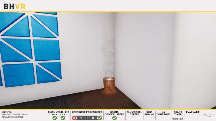 In the examination trainees would be put to test all of their knowledge to go through the fire scenario safely. For the examination I worked among other things on adding a few of the scoring features and added the low level feedback for all the scores. Both giving, saving & displaying it.